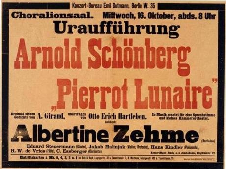 Ventuno liriche (“tre volte sette”, secondo la dizione di Schönberg) del poeta belga Albert Giraud, tradotte liberamente in tedesco da Otto Erich Hartleben perdono di simbolismo e si accordano angolosamente al Pierrot Lunaire op. 21 per soprano e cinque strumentisti per otto strumenti.