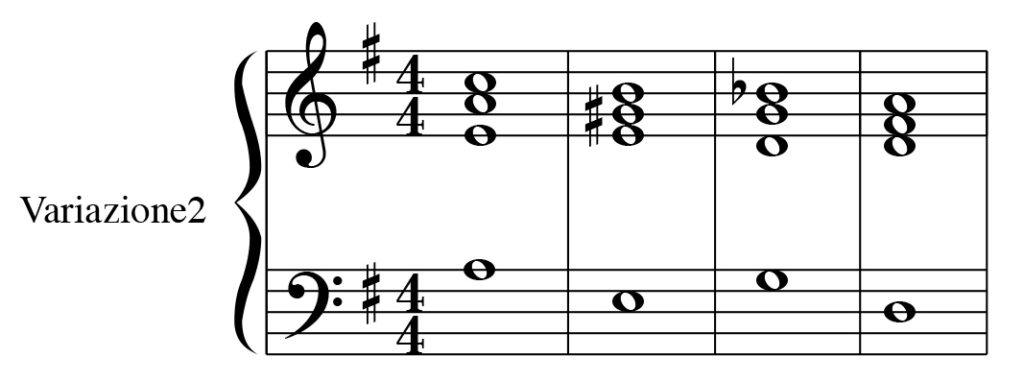 Il passaggio più interessante è sicuramente l’interscambio minore\maggiore dei primi 2 accordi con il basso che scende sulla settima del C# e poi diatonicamente fino al Re# risolvendo in un accordo maggiore ovvero il Si.
