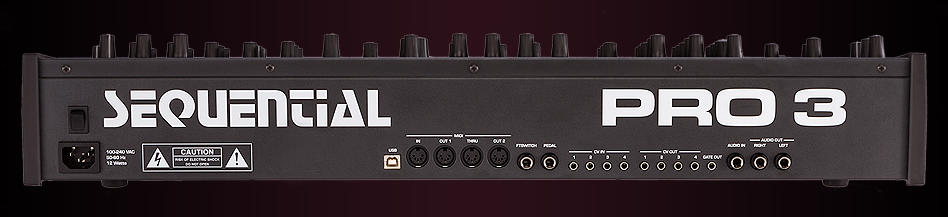 Il Pro-3 è anche aperto alla “collaborazione” con il mondo esterno, grazie a quattro prese CV sul pannello posteriore, oltre alle classiche prese MIDI.