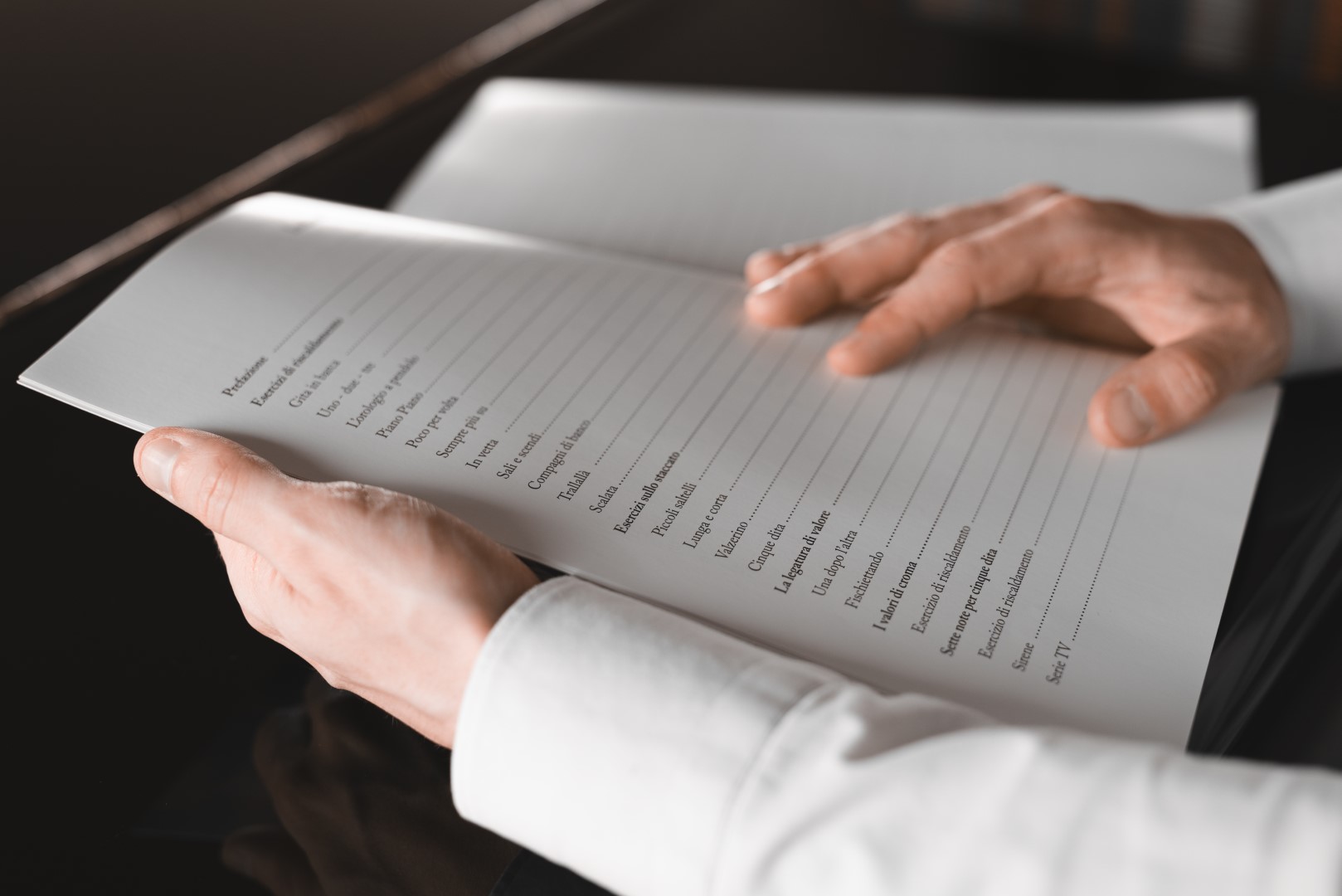 Il libro è suddiviso in capitoli che propongono alcune difficoltà tecniche note a noi pianisti quali, fra tutte, l’indipendenza assoluta tra le mani e tra le dita di una stessa mano.