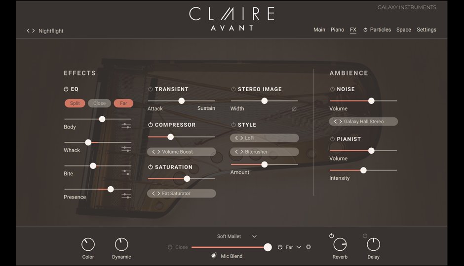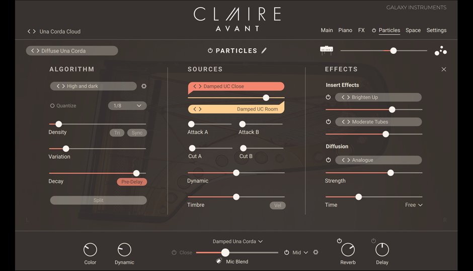 Un elemento fondamentale di Claire: Avant è il suo motore Particles, che aggiunge ad ogni nota texture armoniche dinamiche e paesaggi sonori in evoluzione continua. Questo strumento è progettato per arricchire il suono in modo organico, offrendo un’ampia gamma di possibilità espressive.