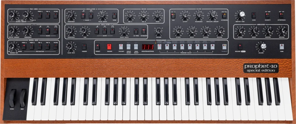 Il Prophet-10 Special Edition è il frutto dell’evoluzione del leggendario Prophet-5, il sintetizzatore polifonico che ha segnato profondamente il mondo della musica elettronica sin dal suo debutto.