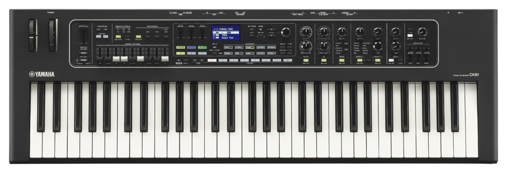 La CK61 è una tastiera compatta a 61 tasti, semi-pesata. Combina i suoni dello stage piano CP Yamaha con quelli dell’organo e del sintetizzatore YC Stage Keyboard, per un panorama sonoro che comprende pianoforti, pianoforti elettrici, archi, ottoni, organo e moderni suoni di sintetizzatore.
