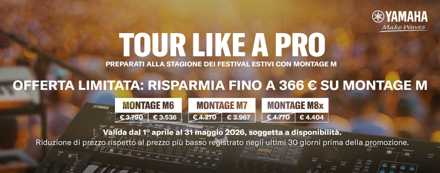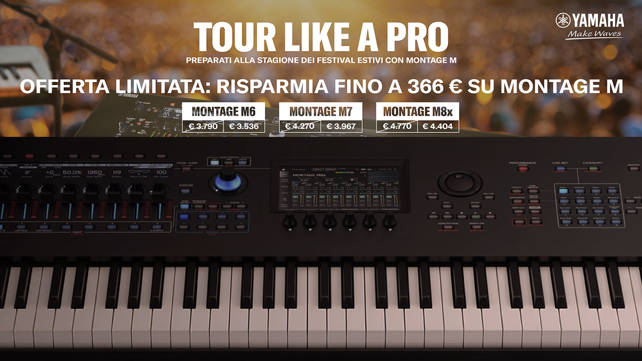 Con i festival estivi alle porte, Yamaha Italia ha dato il via a una promozione dedicata ai tastieristi – in particolare ai professionisti in tour – che punta dritta al sodo: il Montage M, sintetizzatore di punta del colosso giapponese, è disponibile a prezzi ridotti per tutta la primavera, fino al 31 maggio 2026.