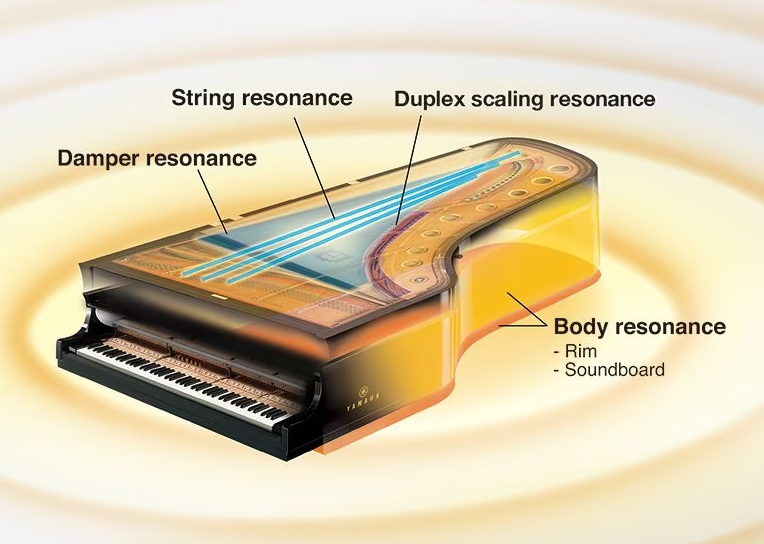 Questo pianoforte incorpora la tecnologia di Modellazione della Risonanza Virtuale (VRM) e la Grand Expression Modeling. Queste tecnologie riproducono fedelmente le complesse interazioni tra martelli, smorzatori e corde di un pianoforte acustico, permettendo variazioni sonore illimitate.