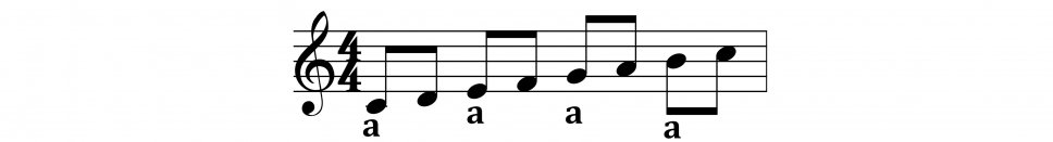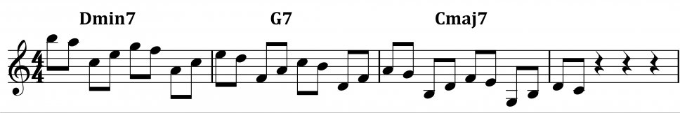 Riandiamo momentaneamente allo svolgimento di una scala maggiore, noteremo che i riferimenti dell’accordo risaltano in funzione del luogo in cui cadono gli accenti, quindi sentiremo l’accordo di Cmaj7 poiché gli accenti più evidenti battono sui punti forti dei movimenti. Se suddividiamo una misura di 4/4 in quattro movimenti ed eseguiamo la scala, le note dell’accordo suonano ad ogni battere dei quattro movimenti.