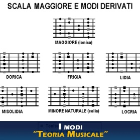 Ritroviamo questi due modi perfettamente intatti anche in un contesto modale, dove per semplicità (questa definizione non è propriamente corretta, ma non andremo in questa sede a spiegare il perché) sono chiamati modo Ionico e modo Eolio, ma possiamo contare sul prezioso supporto di altri cinque modi: dorico, frigio, lidio, misolidio, locrio (perché anche “l’ocrio”… vuole la sua parte =D)