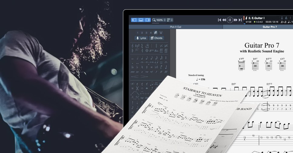 Guitar Pro è un programma per scrivere, trascrivere e leggere spartiti di chitarra, basso e altri strumenti a corda. Nato intorno ai primi anni del 2000 come semplice editor di intavolature per windows, ha avuto un’evoluzione notevole fino ad arrivare attualmente con la versione 7 a essere considerato il programma più completo e professionale del settore.